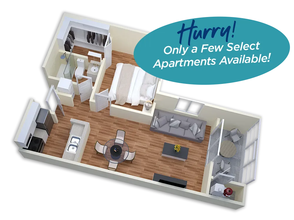 - “Right-Size” Your Life: 10 different floor plans to choose from— studio, 1-bedroom, and 2-bedroom options